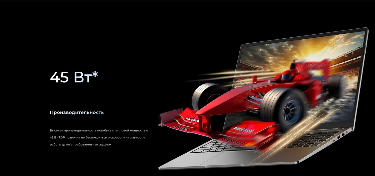 Высокая производительность ноутбука с тепловой мощностью 45 Вт TDP позволит не беспокоиться о скорости и плавности работы даже в требовательных задачах