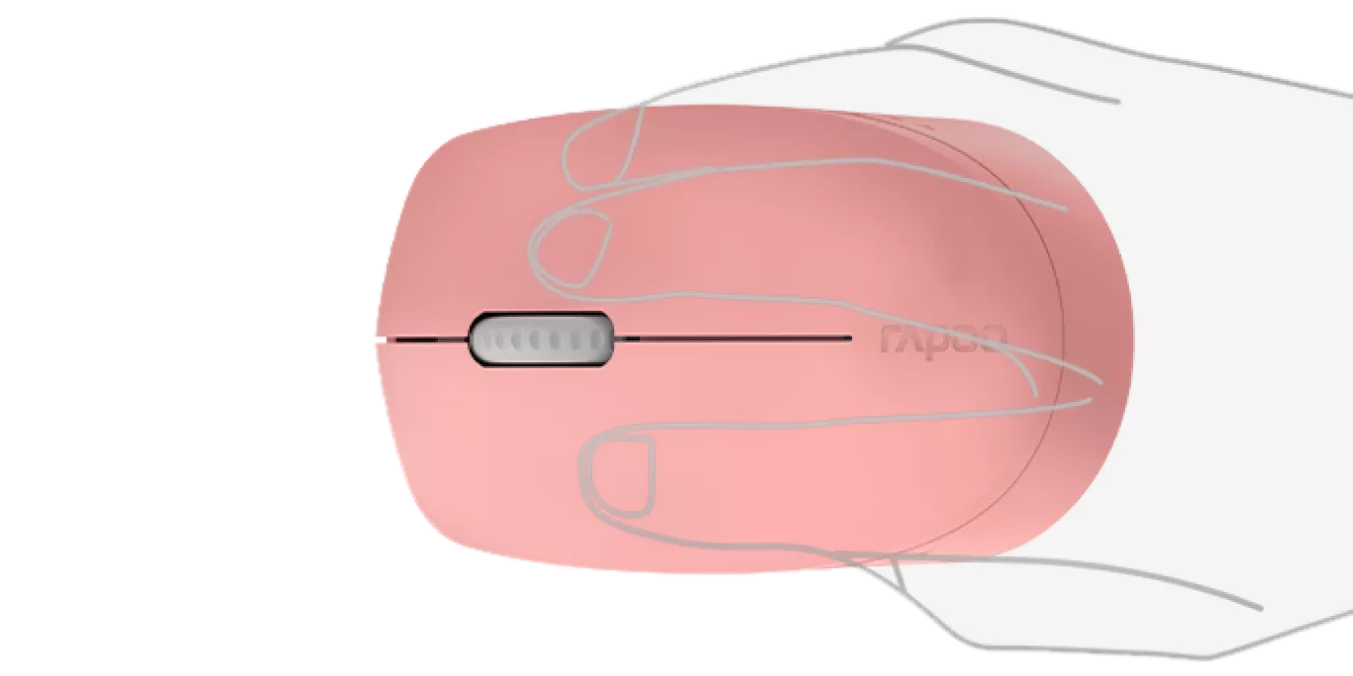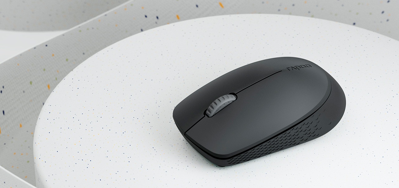 RAPOO M100 Silent выполнена в компактном корпусе из матового пластика без декоративных элементов и подсветки. Универсальная форма подходит как для правшей, так и для левшей, а небольшой вес 55 г делает мышь удобной для повседневной работы дома, в офисе или в дороге.
