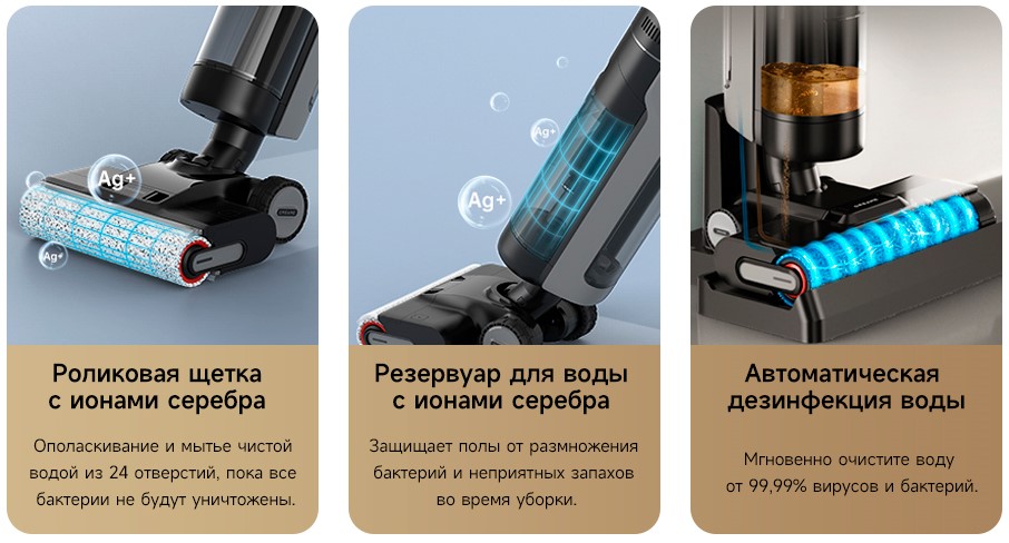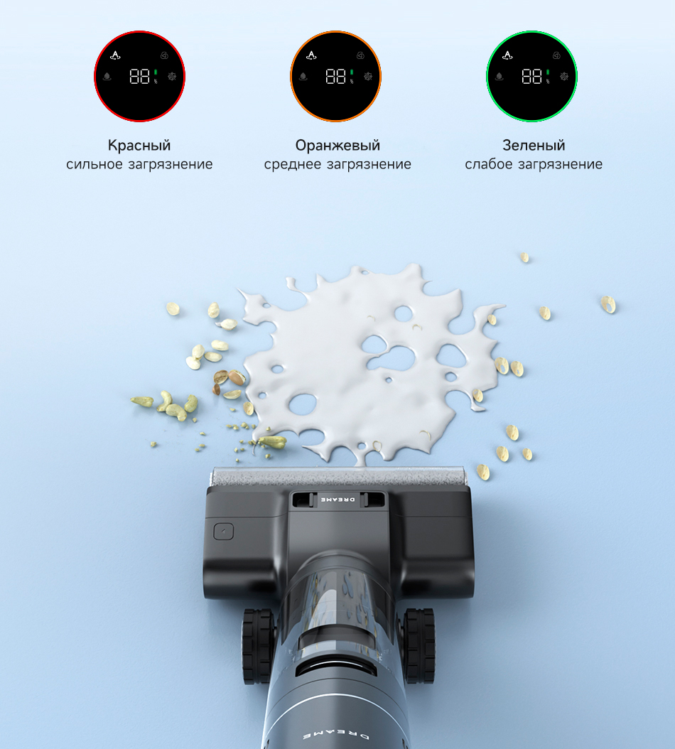 Функции и возможностиинтеллектуальное обнаружение грязи, подсветка зоны уборки, самоочистка роликовой щетки, сушка горячим воздухом