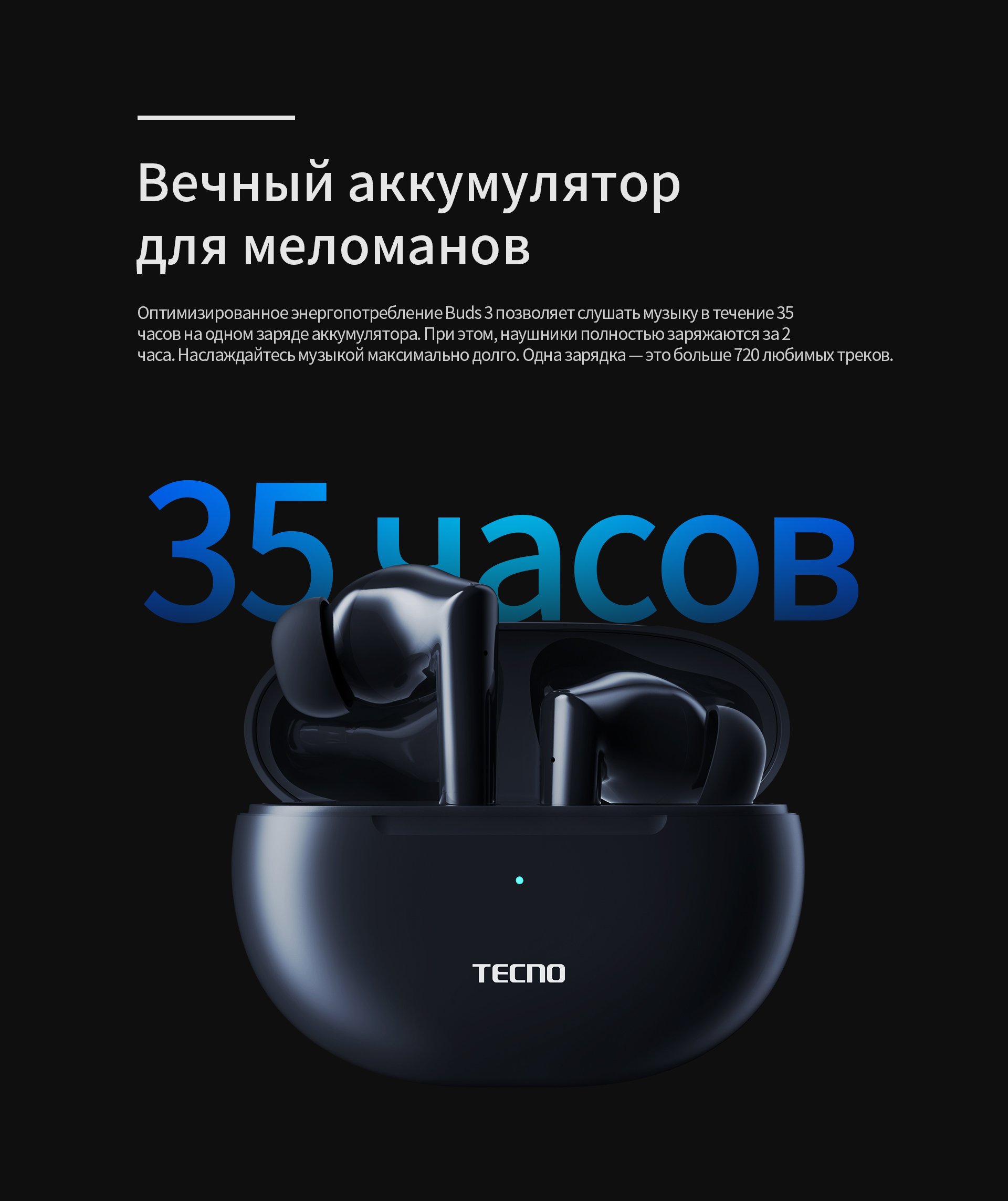 | Время работы (с зарядным кейсом) | 35 ч |