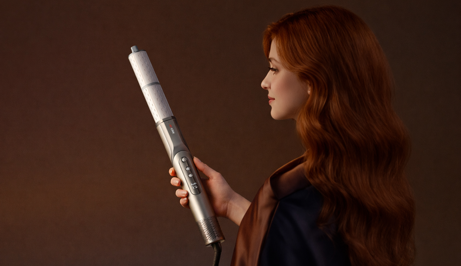 Фен работает с уровнем шума около 65 дБ, что заметно тише классических моделей. Встроенный генератор ионов снижает статическое электричество и помогает сохранить гладкость волос. На корпусе расположен дисплей, отображающий текущие настройки, а съемный фильтр упрощает уход за устройством.