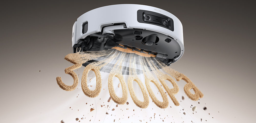 Устройство рассчитано на глубокую уборку: оно удаляет пыль, шерсть животных, крупные частицы и накопившийся мусор в углах. Значение в 30 000 Па позволяет справляться с загрязнениями на твёрдых полах и коврах. Чтобы улучшить качество уборки, робот сам увеличивает мощность на мягких покрытиях.