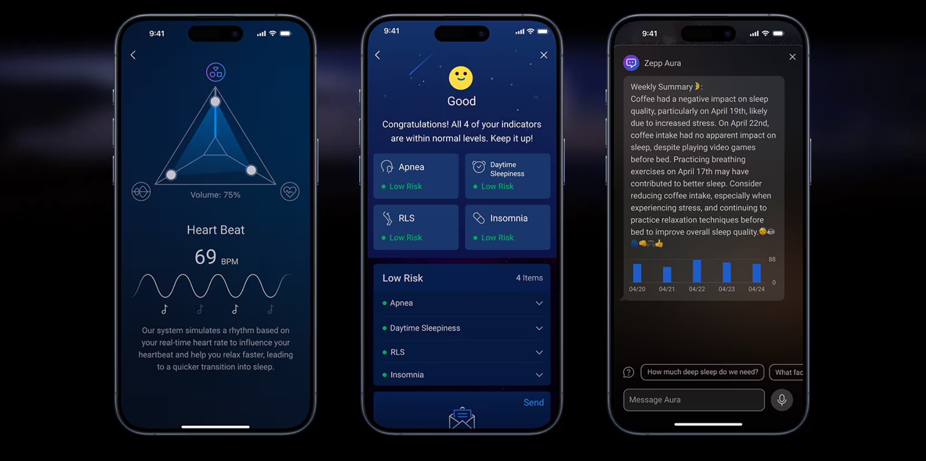 | Измерения | продолжительность и качество сна, пульс, уровень стресса и восстановление, количество кислорода в крови |